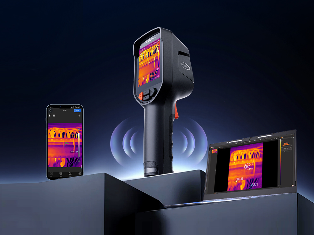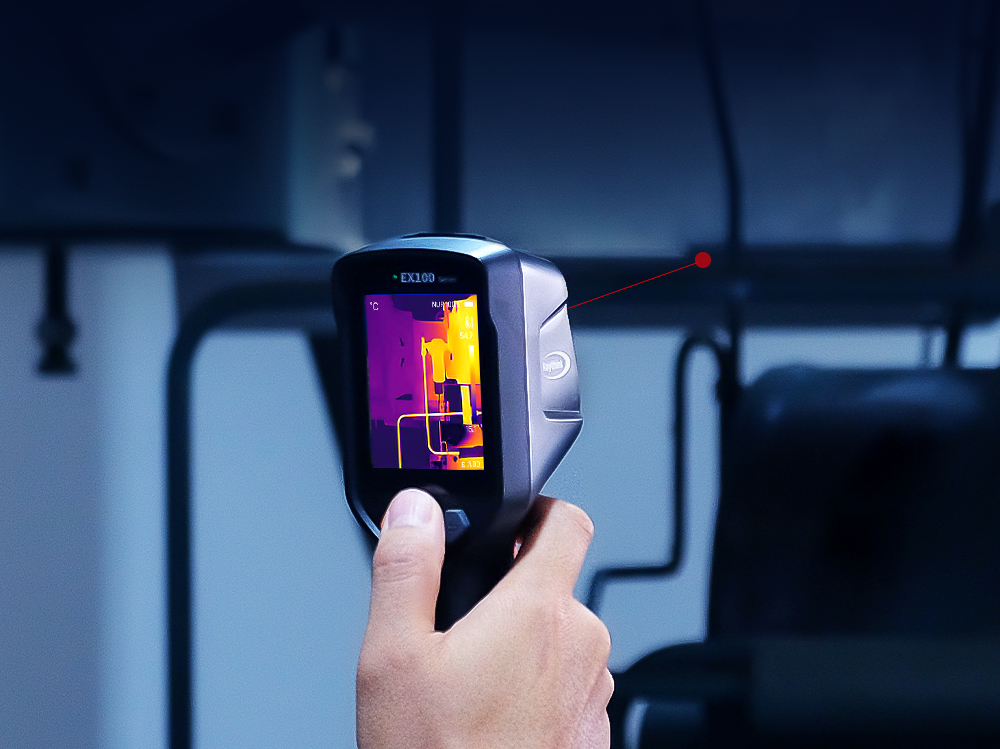 EX100系列手持紅外熱像儀,搭載160×120分辨率紅外探測器,,AI實時超分至320×240。配備2.8吋大屏,支持激光指示、視頻錄制、UVC+Wi-Fi投屏等功能,是電氣巡檢、暖通查漏、汽車維修等領域的高性價比之選。